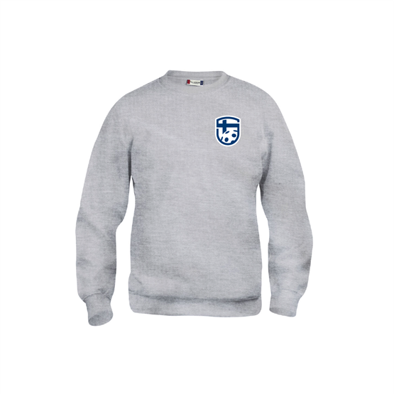 Lasten o-aukkoinen collegepaita jossa joustava resori kauluksessa ja hihansuissa. Pehmeä materiaali joka soveltuu kovaan käyttöön ja kestää lukemattomia pesuja.